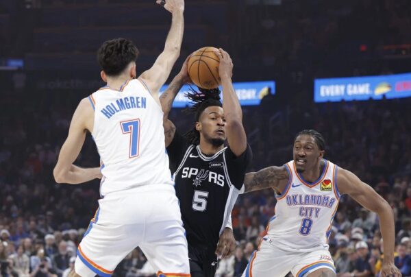 Сан Антонио го добија и третиот меч против Оклахома од почетокот на сезоната. Актуелните шампиони досега забележаа пет порази во 31 натпревар, три од нив ги забележаа во натпреварите со франшизата од Тексас.